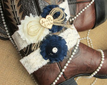 Personalized Rustic Heart Wedding Garter Set,Country Chic Garter Set,Monogrammed Wedding Garter Set