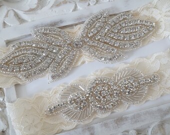 Wedding ivory lace garter set ,Bridal garter set , Crystal bridal garter . Wedding garter , wedding gift