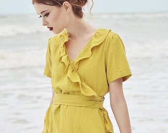Linen Wrap Dress - Cotton Wraparound Dress - Casual Linen Dress - Cotton Summer Dress