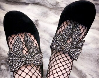 Genuine Suede Black color bow shoe clips, Shoe Decorations