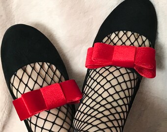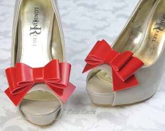 Red Vinyl Shoe Bow Clips, Red Clip on Shoe Bows, Red Bow Shoe Clips