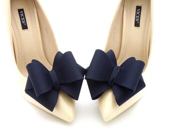 Navy blue bows - shoe clips Manuu, bow shoe clips, shoe bows, Schuhclips, shoe clips for pumps