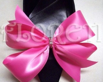 Sassy Designer Shoe Bow Clips Hot Pink Satin Gifts -Ready Made
