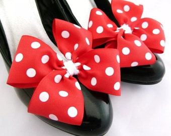 Minnie Mouse accessories Shoe Clips Fancy Dress accessories Shoe Bows Red White Polkadot