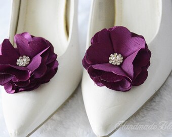 Plum Flower Shoe Clips, Bridal Shoe Clips, Wedding Silk Flower, Purple Clips, Shoe Accessories, Flower for Shoes, Purple Shoe Clips