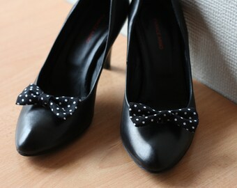 Polka dots black and white bows shoe clips
