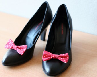 Polka dots red and white bows shoe clips