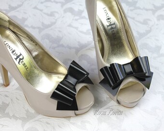 Halloween Black Vinyl Shoe Bow Clips, Black Clip on Shoe Bows, Black Bow Shoe Clips, Halloween Witch Bows, Halloween Bows