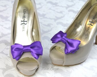 Purple Shoe Bow Clips, Purple Clip on Shoe Bows, Purple Wedding Shoe Bows, Purple Bow Clip Shoes