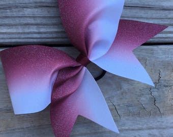 Glittery ombre ribbon cheer bow. Available in many colors. Made with ribbon NOT glitter.
