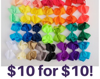 You pick ten (10) 4 inch bow clips, Hair bows, girls bows, hair bows for girl, christmas gifts for girls, ribbon hair bows, stocking stuffer