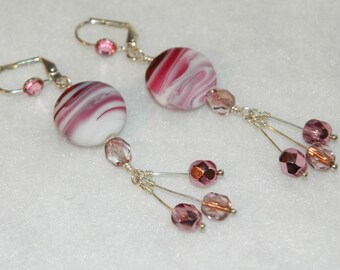 Handmade Czech Glass Earrings with Pink/White Stripe Coin Beads (KE268)
