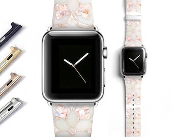 Floral Marble Apple watch band women, Apple watch strap, genuine leather band, pink white 38mm 42mm S056