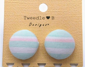 Mint and Pink/White Stripe - Fabric Button Earrings
