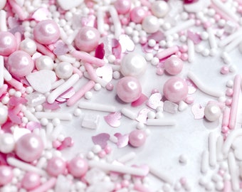 Cotton Candy Kisses Valentines Sprinkles Pink White Heart Mix Edible Cake Sprinkles Suitable for Vegans Gluten Dairy Free Pearls Cupcakes