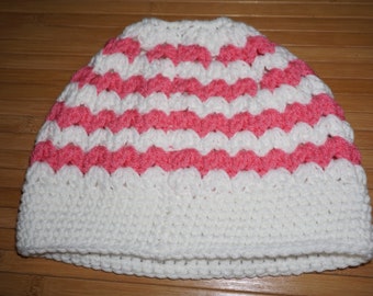 Pony Tail Beanie Hats - Pink/White Stripe - Adult One Size