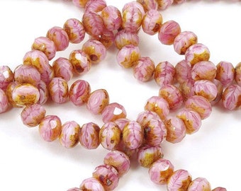 Czech Glass Pink Hurricane Picasso FP Rondelle Beads 6x8mm - 25