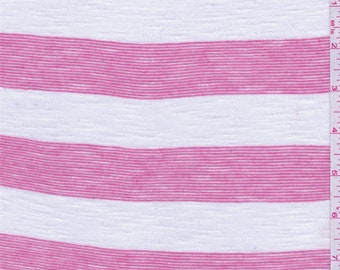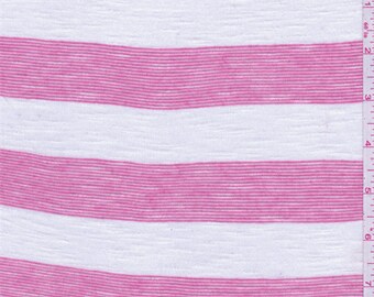 Hot Pink/White Stripe Jersey Knit, Fabric By The Yard