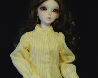 Yellow Mandarin collar blouse with full long sleeve for Minifee, MSD sized BJDs and Ellowyne Wilde
