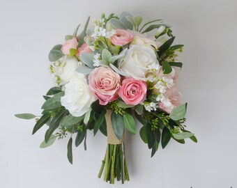 boho bouquet, bridal bouquet, wedding bouquet, wedding flowers, artificial bouquet, silk bouquet, pink, white, eucalyptus, beach wedding
