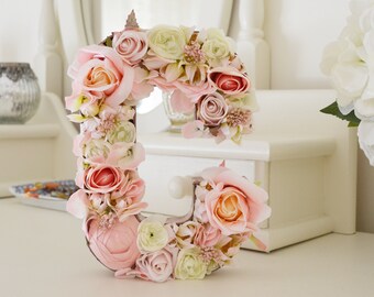 8" pink flower letter - pink white letter - rose flower letter - hydrangea letter - baby shower - bridal shower - flower monogram - décor