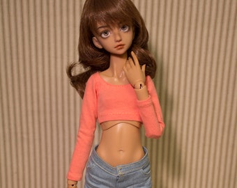 Coral long sleeve crop top for minifee DC kid and slim MSD sized BJD