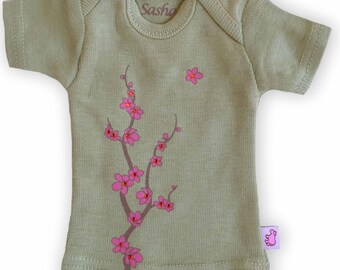 Sasha Doll & MSD sized T-Shirt - Sage Sparkly Cherry Blossom