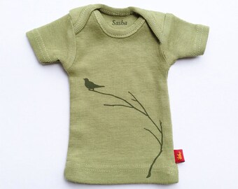 Sasha Doll & MSD sized T-Shirt - Sage Bird on a Branch