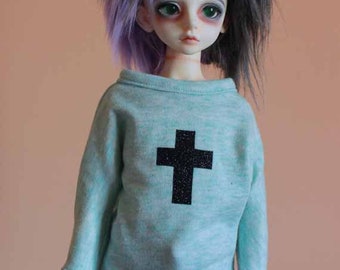 Sasha Doll & MSD sized L/S T-Shirt - Grey PUNK with studs