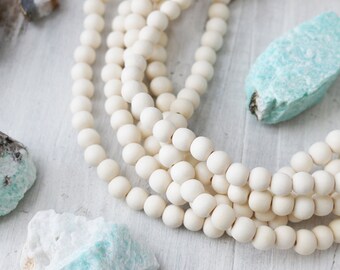 6mm white wood, wood beads, white wood beads, exotic beads, natural beads, boho beads,