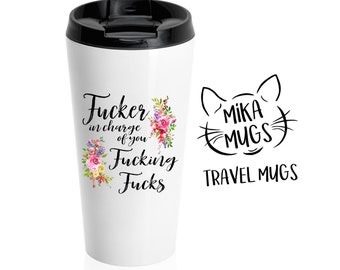 Fucker In Charge Of You Fucking Fucks, Travel Mugs, Funny Boss Mug, Coffee Mug for Boss, White Elephant Gift, Travel Mug. To-Go Mugs