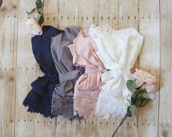 Bridesmaid Robes, Cotton Bridesmaid Robe, Bridesmaid Gift, Bride Robe, Wedding Robes, Bridal Party Robes, Cotton Lace Robe, Personalized