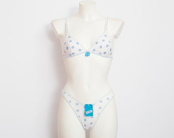 Vintage lingerie set blue polka dot triangle bra and panty dead stock Vintage