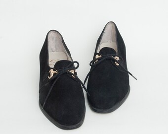 Size 6 Black suede Shoes laced up Golden buckles 80's Dead Stock Vintage