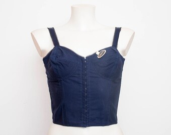 1950 navy blue bullet bra long line bra bombshell dead stock Vintage