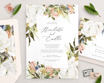 Floral Wedding Invitation Set | Rustic Wedding Invites | Romantic Wedding Invitation Suite | Blush Wedding | Modern | Fall, Spring