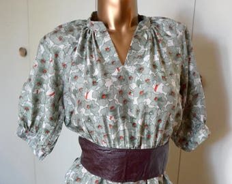 Wonderful vintage dress 1940 french chic Pin Up flowers green 6-8 UK //Superbe vintage 1940's Pin Up smart with the French XS-S flowers boho dress