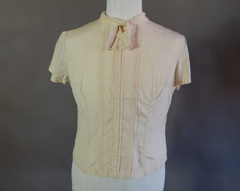 Vintage 1950s 1960s cream white pure silk blouse with bow and buttons in the back