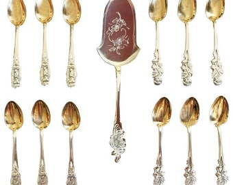 French Silver and Gold Tea or Coffee Spoons with Cake Server