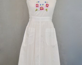 Vintage Summer Dress | Vintage Embroidered Cotton Pinafore Dress | Vintage Sun Dress | French Vintage Dress