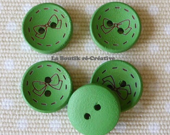 Set of 10 green Christmas tree wood bow 15mm buttons
