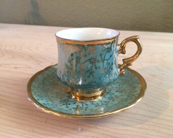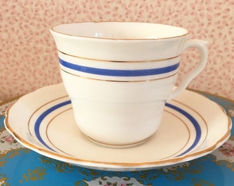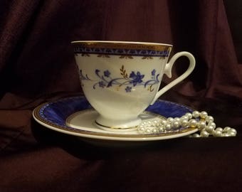 Blue and Gold Tea Cup and Saucer by Westbrook, Garland Necklace Pattern, Vintage Bone China