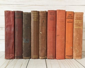 Vintage Shabby Red to Orange Decorative Books for Display, Rainbow Bookshelf