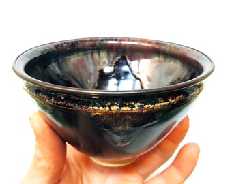 Japanese tea ceremony tenmoku style chawan tea bow by Sozan Mandai - copper ring hairline