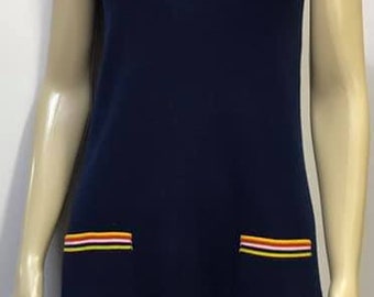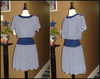 Vintage 1990s Dress / FRENCH PASTRY / Nautical Blue and White Striped / New Old Stock / Small / Medium