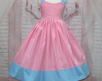 SALE Girl Pink Dress, Girl Blue Dress, Pink and Blue Dress, Pink Polka Dots Dress, Blue Polka Dots Dress, Pink and White Dress