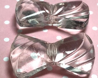 Pair Of Vintage Glass Realistic Bow Buttons - Clear