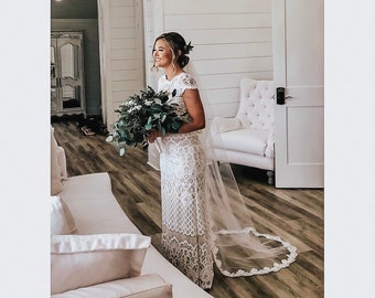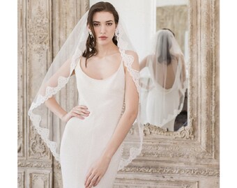Fingertip Wedding Veil, Lace Wedding Veil, Lace Veil, Fingertip length veil, Off white veil, Bridal Veil, Veils, Wedding Dresses