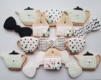 Tea party sugar cookies, tea party baby shower, tea and bow ties, bow tie baby shower,