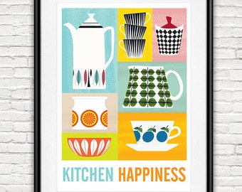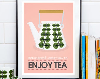 Tea print, kitchen print, Stig LIndberg Prunus, kettle tea pot poster, kitchen quote art, mid century modern, Make tea not War, Tea wall art
